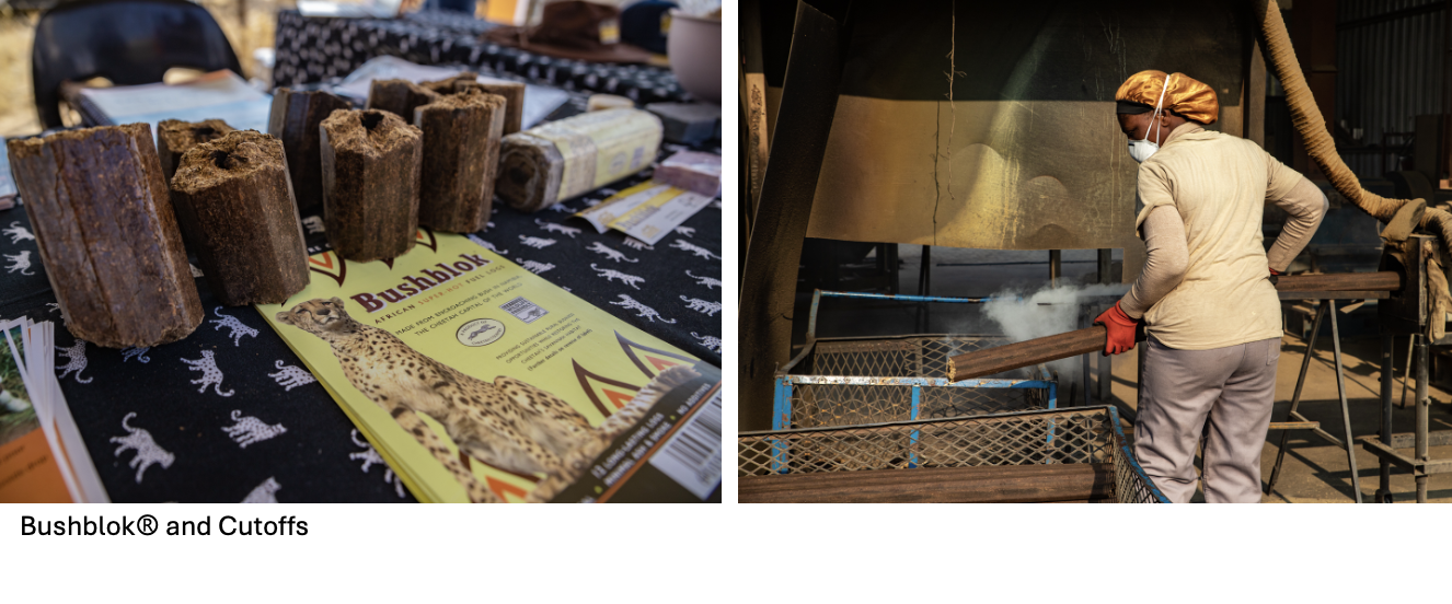 In Namibia, the loss of cheetah habitat is also being exacerbated by climate change. The spread of woody vegetation – a phenomenon known as bush encroachment. This unchecked overgrowth is swallowing grassland habitat, reducing available grazing land and altering the ecosystems cheetahs and other species rely on. For more than two decades, CCF has turned this ecological challenge into a nature-based solution. By selectively thinning overgrown areas, CCFis restoring habitat for cheetahs and other wildlife – and in the process, boosting biodiversity and improving rangeland productivity for communities. The harvested bush is then turned into Bushblok, an affordable, clean–burning. Since 2001, this project has generated employment opportunities for rural communities and reduced reliance on firewood. This year, Bushblok Offcuts were introduced – a budget-friendly product line created from irregular cuts, making sustainable energy accessible to more rural households.