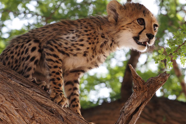 Teja (male) is a cheetah and one of three orphaned cubs (Hadassah – formerly named Shy, and Kora both females) born to a released female named Calypso. Calypso died from a snake bite shortly after giving birth, and the one-month-old cubs were rescued by CCF staff in March 2022. Teja was brought back to the main field center where he is being raised alongside her siblings and Kaveri.