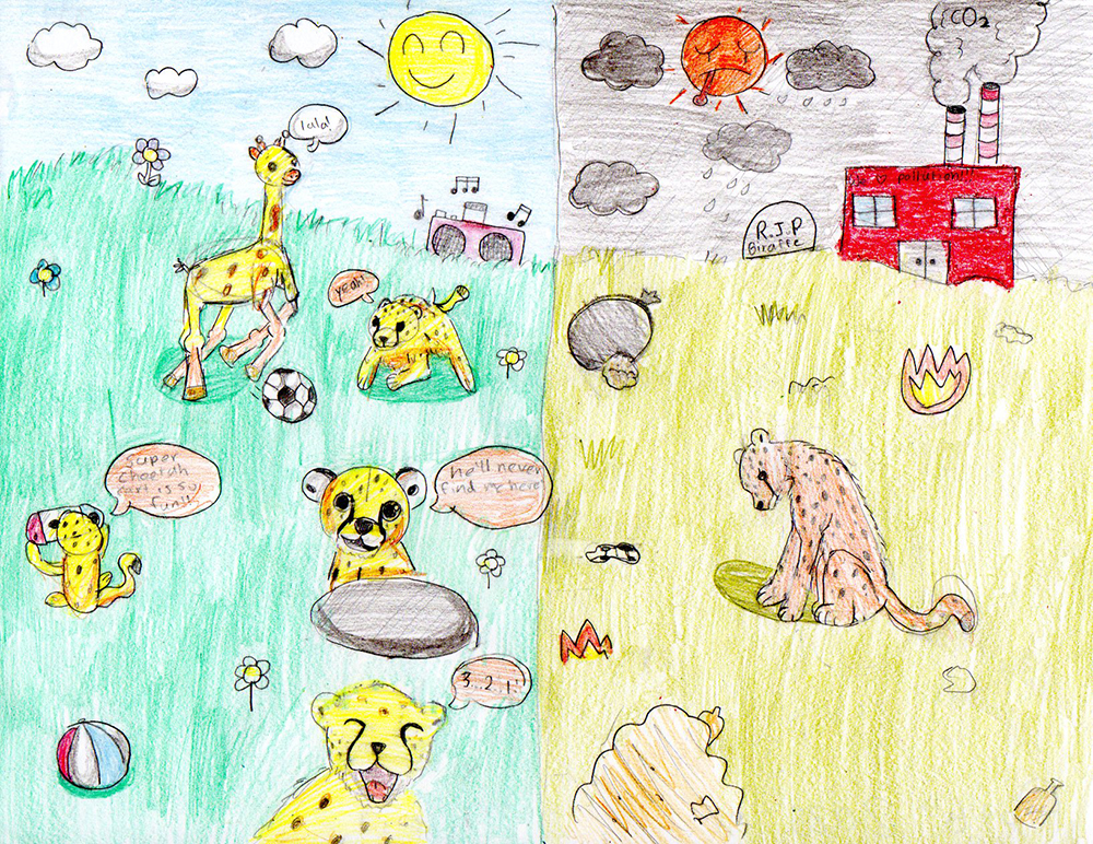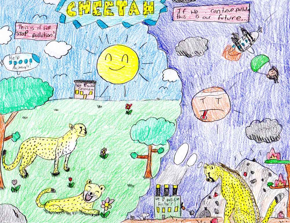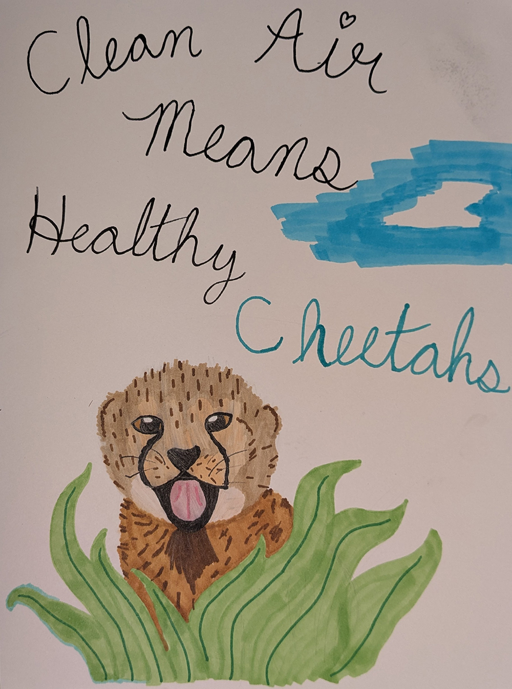 We’re thrilled to announce the winners of this year’s Cheetah Conservation Fund Children’s Virtual Art Contest! This year’s theme, “Clean Air for All,” inspired incredible creativity from young artists around the world who used their talents to highlight the importance of environmental protection for cheetahs and all wildlife.