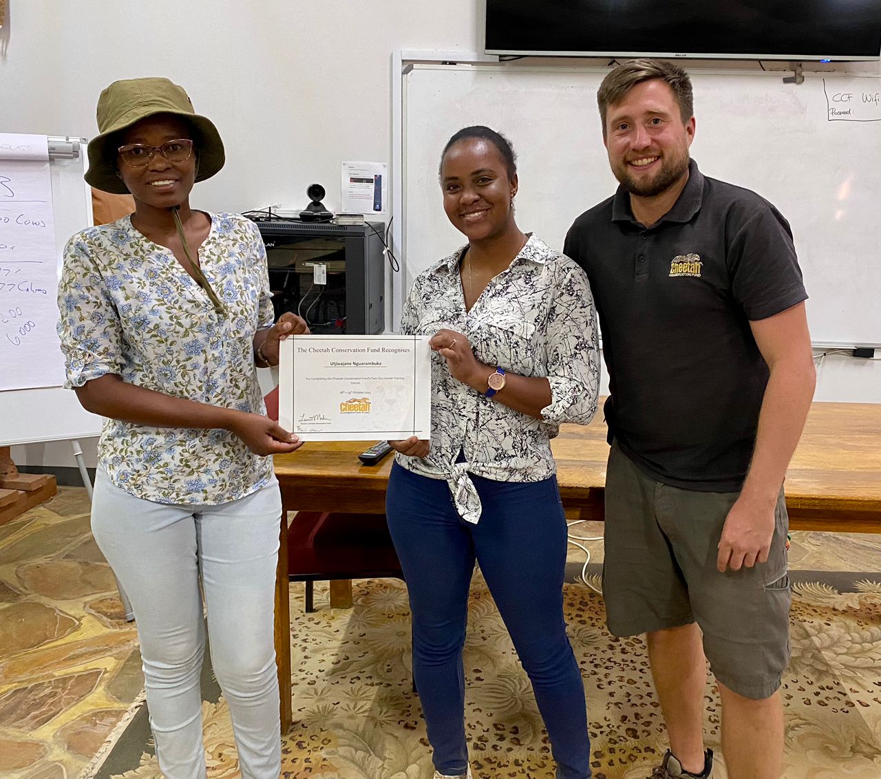 We extend a colossal shoutout to the extraordinary team at the Model Farm, and heartfelt gratitude to Vistoria Tuhemwe, our outstanding veterinary technician, Fransina Simson and Heita Simeon, our creamery maestros, Johan Britz, our farm manager, Matti Matti Nghikembua, our garden genius, Justin Moyo, our amazing cheetah keeper, and Ignatius Davids, one of our great educators. Their unwavering passion and dedication were the driving force behind the remarkable success of this training.